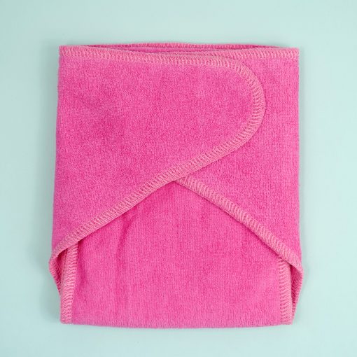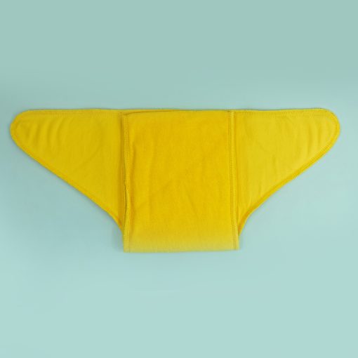 The long rectangular pad folds into three for a newborn and then into two as the baby grows, providing a customisable fit. Additionally, you can add boosters between the folds for extra absorbency, ensuring the nappy grows with your baby’s needs.