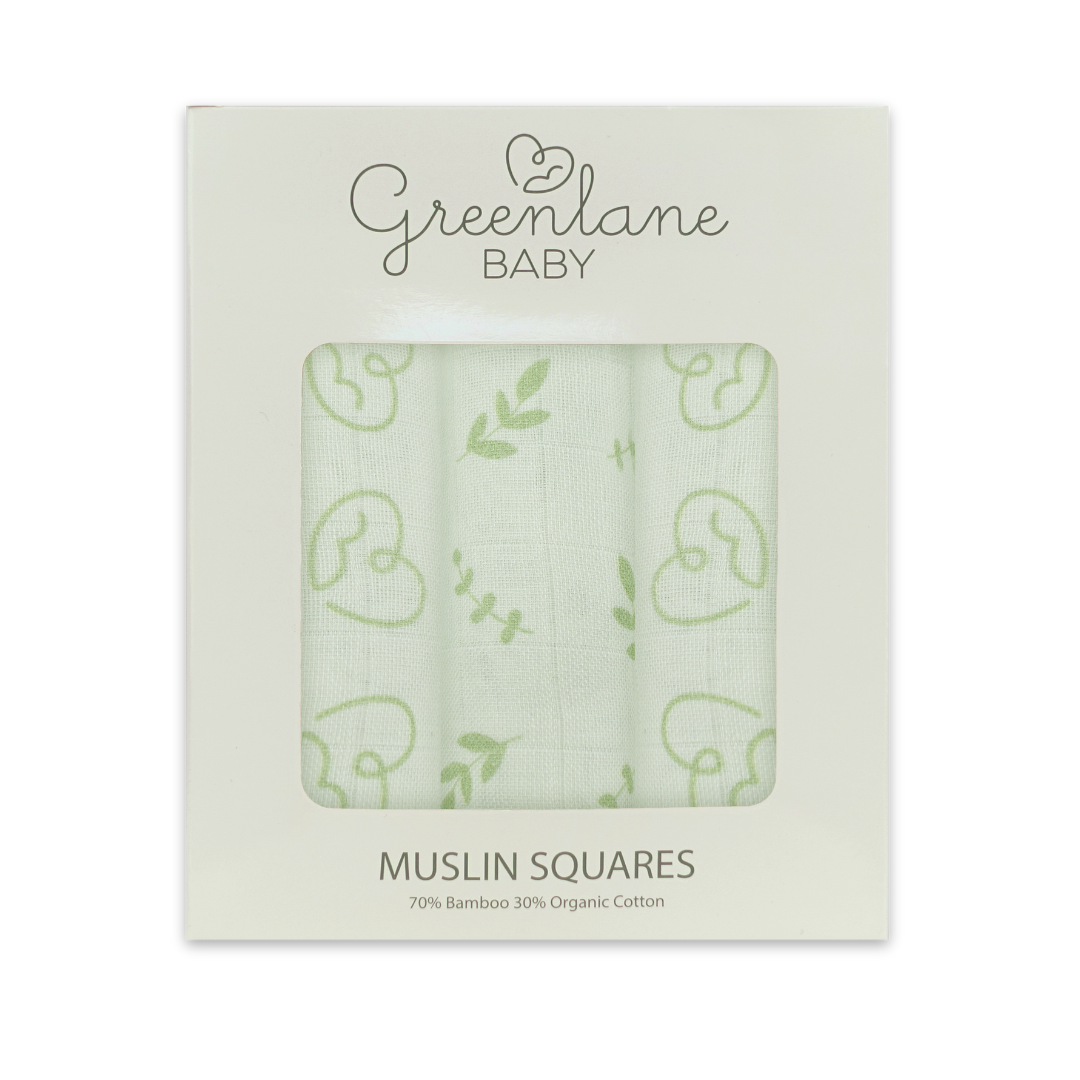 Be the first to review “Greenlane Baby 3 Pack Bamboo/Organic Cotton Muslin Squares 70x70cm – Heart Combo”
