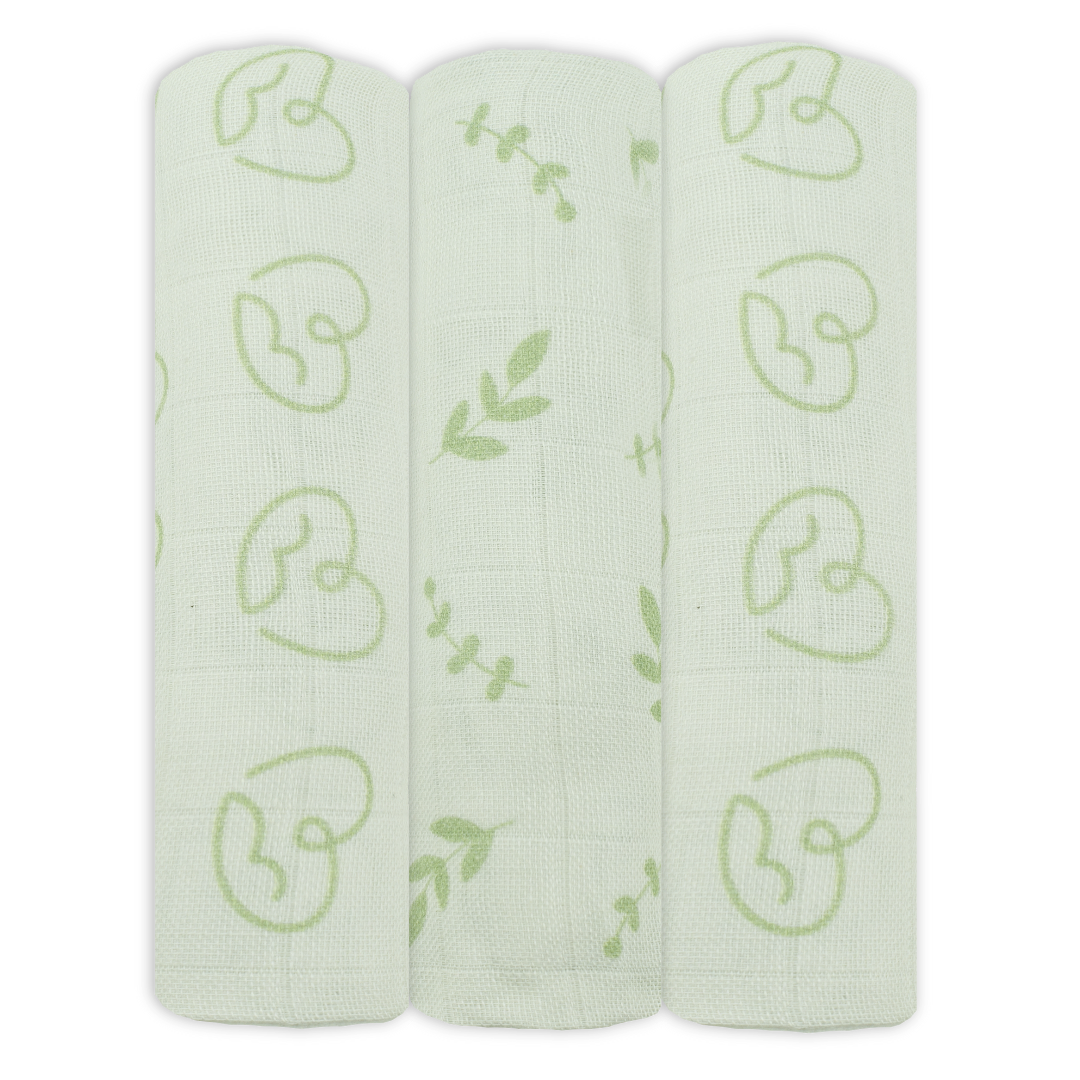 Greenlane Baby 3 Pack Bamboo/Organic Cotton Muslin Squares 70x70cm – Heart Combo