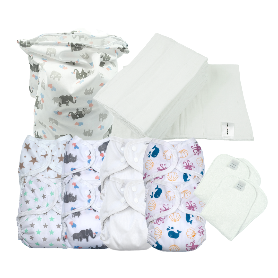 Newborn Full Time Reusable Nappy Kit – Prefolds